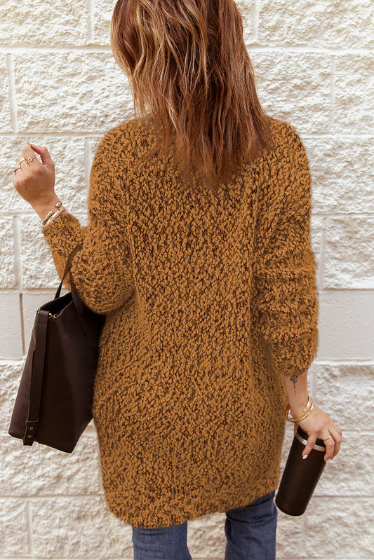 Fuzzy Popcorn Knit Open Front Longline Cardigan