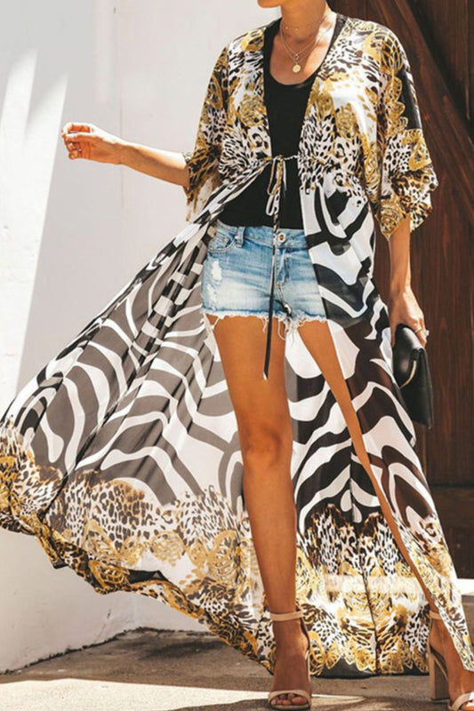 Dropped Shoulder Long Sleeve Crochet Duster Cardigan