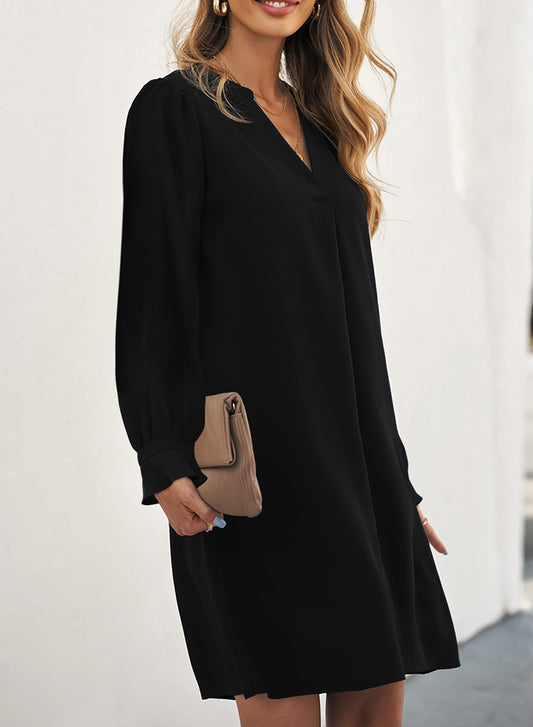 Leopard V-Neck Balloon Sleeve Tiered Dress
