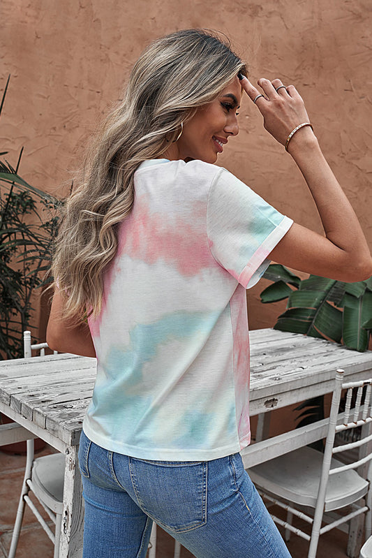 Tie-Dye Spliced Lace Raglan Sleeve Tee